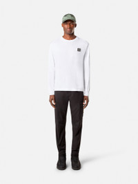 T-shirt in cotton jersey featuring a Stone Island Compass logo patch on the chest, ribbed details, and chain overstitching. Garment dyed. FABRIC RESEARCH AND TREATMENT Long-sleeve T-shirt in cotton jersey. Garment dyed. STYLE AND FIT Ribbed neckline. Stone Island Compass logo patch on chest. Thinly ribbed cuffs. Chain overstitching on the bottom hem. COMPOSITION AND CARE Garment: 100% Cotton. Ribbing: 100% Cotton
