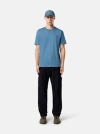 Short-sleeve T-shirt in organic cotton jersey, featuring a Compass logo patch on the chest, overlock seams, and lunette detail on the back. Garment dyed with the 'Fissato' effect. FABRIC RESEARCH AND TREATMENT Short-sleeve T-shirt in organic cotton jersey. Garment dyed and treated with the ‘Fissato’ effect, a water-soluble resin treatment process and garment dyeing technique creating a three-dimensional appearance. STYLE AND FIT Ribbed neckline. Stone Island Compass logo patch on chest. Overlock seams. Lunette under back neckline with inner lining. Slim fit. COMPOSITION AND CARE Garment: 100% Cotton. Ribbing: 100% Cotton
