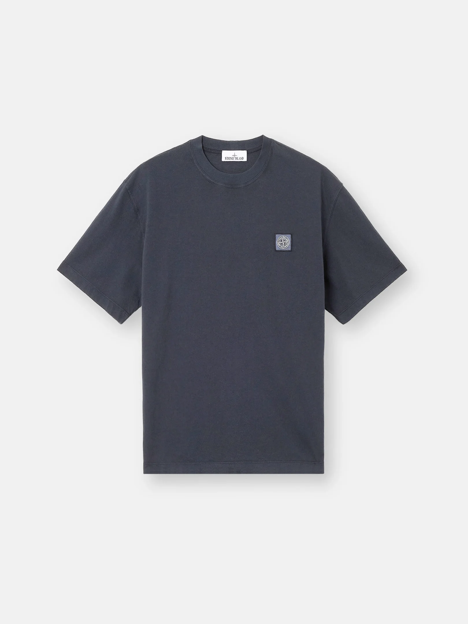 Short-sleeve T-shirt made from combed cotton jersey, featuring a ribbed neckline and monocolor Compass patch on the chest. Garment dyed. FABRIC RESEARCH AND TREATMENT Short-sleeve T-shirt in combed cotton jersey. Garment dyed. STYLE AND FIT Ribbed neckline. Stone Island Compass logo patch. Regular fit. COMPOSITION AND CARE Garment: 100% Cotton. Ribbing: 94% Cotton 6% Elastane / Spandex