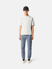 Short-sleeve T-shirt made from combed cotton jersey, featuring a ribbed neckline and monocolor Compass patch on the chest. Garment dyed. FABRIC RESEARCH AND TREATMENT Short-sleeve T-shirt in combed cotton jersey. Garment dyed. STYLE AND FIT Ribbed neckline. Stone Island Compass logo patch. Regular fit. COMPOSITION AND CARE Garment: 100% Cotton. Ribbing: 94% Cotton 6% Elastane / Spandex
