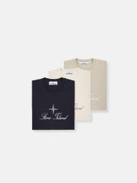 Three-pack of T-shirts in 20/1 organic cotton jersey, featuring a ribbed neckline and archival Stone Island logo on the chest. Garment dyed. FABRIC RESEARCH AND TREATMENT Three-pack of T-shirts in 20/1 organic cotton jersey. Garment dyed. STYLE AND FIT Ribbed neckline. Embroidered archival Stone Island logo at chest. Pack of three. Regular fit. COMPOSITION AND CARE 100% Cotton