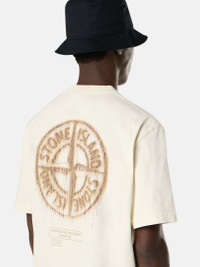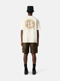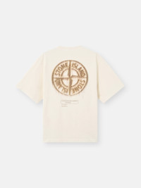 Short-sleeve T-shirt in combed organic cotton jersey, featuring Stone Island logo on the chest and Compass with raised details on the back. Garment dyed. FABRIC RESEARCH AND TREATMENT Short-sleeve T-shirt in combed organic cotton jersey with ‘Bleeding Numbers Compass’ print. Garment dyed. STYLE AND FIT Ribbed neckline. Stone Island logo print on chest. Large print of stylized Stone Island Compass logo with raised details on back. Regular fit. COMPOSITION AND CARE Garment: 100% Cotton. Ribbing: 100% Cotton