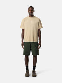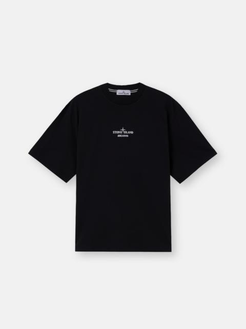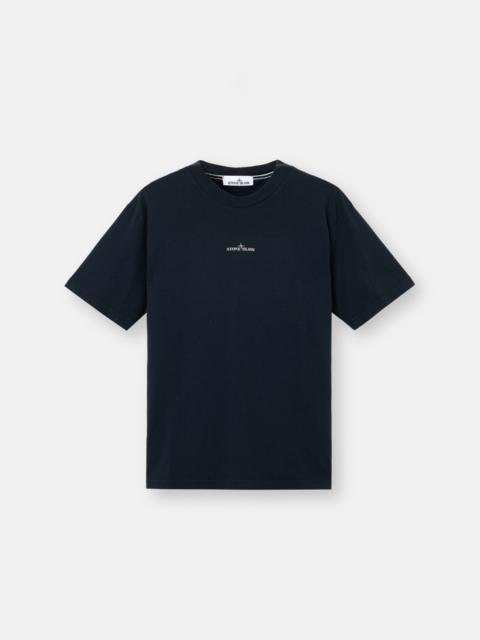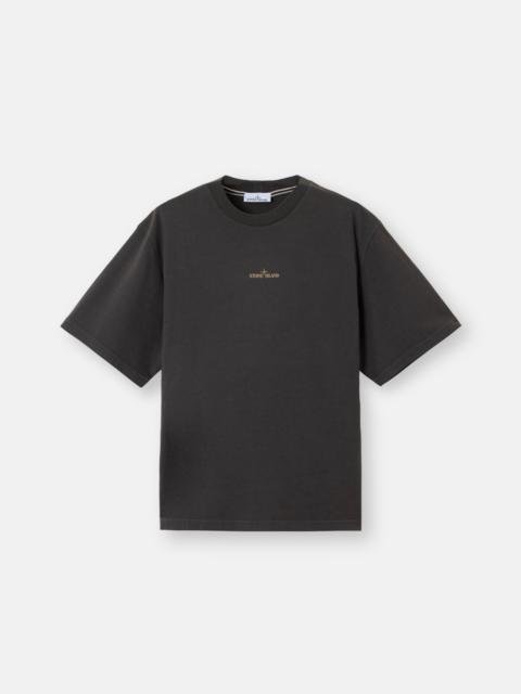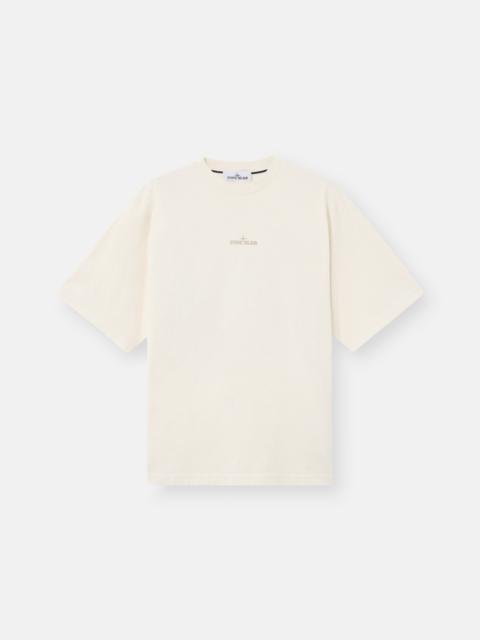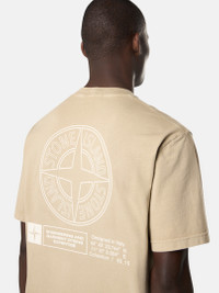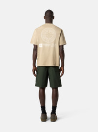 Short-sleeve T-shirt in combed organic cotton jersey, featuring Stone Island logo on the chest and Compass logo on the back. Garment dyed. FABRIC RESEARCH AND TREATMENT Short-sleeve T-shirt in combed organic cotton jersey with ‘Industrial’ print. Garment dyed. STYLE AND FIT Ribbed neckline. Stone Island logo print on chest. Large Stone Island Compass logo print on back. Regular fit. COMPOSITION AND CARE Garment: 100% Cotton. Ribbing: 100% Cotton