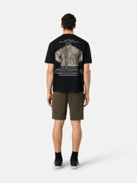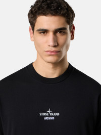 Short-sleeve T-shirt in organic cotton jersey, featuring the seasonal 'Archivio' print of the GESSO jacket from the Spring_Summer '998 collection. Garment dyed. FABRIC RESEARCH AND TREATMENT STONE ISLAND ARCHIVIO PROJECT_GESSO Archivio is a project that illustrates Stone Island's textile experimentation and innovation. This method of research has been known as a lodestar in the fashion and design world for nearly 40 years. Every season, a T-shirt tells the story of a fabric that has become a symbol of this passionate research. A window on the tag attached to the garment holds a sample of the fabric. Short-sleeve T-shirt in organic cotton jersey. Garment dyed. STYLE AND FIT Ribbed neckline, internal tape with parallel stripes. 'ARCHIVIO' embroidery on chest. On back, photo of the GESSO jacket from the Spring_Summer ’998 collection. Regular fit. COMPOSITION AND CARE Garment: 100% Cotton. Ribbing: 100% Cotton