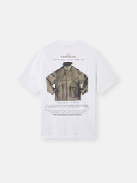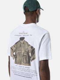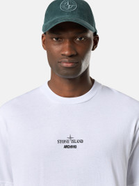 Short-sleeve T-shirt in organic cotton jersey, featuring the seasonal 'Archivio' print of the GESSO jacket from the Spring_Summer '998 collection. Garment dyed. FABRIC RESEARCH AND TREATMENT STONE ISLAND ARCHIVIO PROJECT_GESSO Archivio is a project that illustrates Stone Island's textile experimentation and innovation. This method of research has been known as a lodestar in the fashion and design world for nearly 40 years. Every season, a T-shirt tells the story of a fabric that has become a symbol of this passionate research. A window on the tag attached to the garment holds a sample of the fabric. Short-sleeve T-shirt in organic cotton jersey. Garment dyed. STYLE AND FIT Ribbed neckline, internal tape with parallel stripes. 'ARCHIVIO' embroidery on chest. On back, photo of the GESSO jacket from the Spring_Summer ’998 collection. Regular fit. COMPOSITION AND CARE Garment: 100% Cotton. Ribbing: 100% Cotton