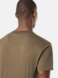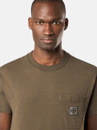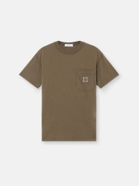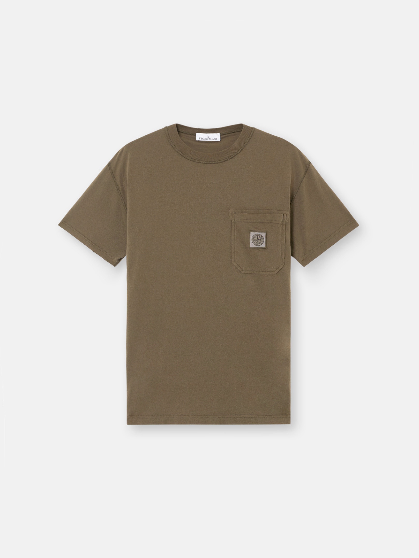 Short-sleeve T-shirt made from organic cotton jersey, featuring chest pocket and Compass patch. Garment dyeing and treatment create a three-dimensional appearance. FABRIC RESEARCH AND TREATMENT Short-sleeve T-shirt in organic cotton jersey. Garment dyed and treated with the 'FISSATO' effect, a water-soluble resin treatment process and garment-dyeing technique creating a three-dimensional appearance. STYLE AND FIT Ribbed neckline. One patch chest pocket featuring the Stone Island Compass logo patch. Overlock seams. Slim fit. COMPOSITION AND CARE Garment: 100% Cotton. Ribbing: 100% Cotton