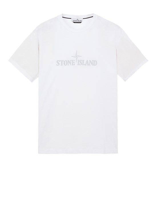 FABRIC RESEARCH AND TREATMENT 'STITCHES TWO' EMBROIDERY: Short-sleeve T-Shirt in 20/1 cotton jersey. Garment dyed. STYLE Slim fit. Ribbed neckline. ‘Stitch Two’ embroidered motif of the Stone Island logo central on chest. COMPOSITION 100% Cotton