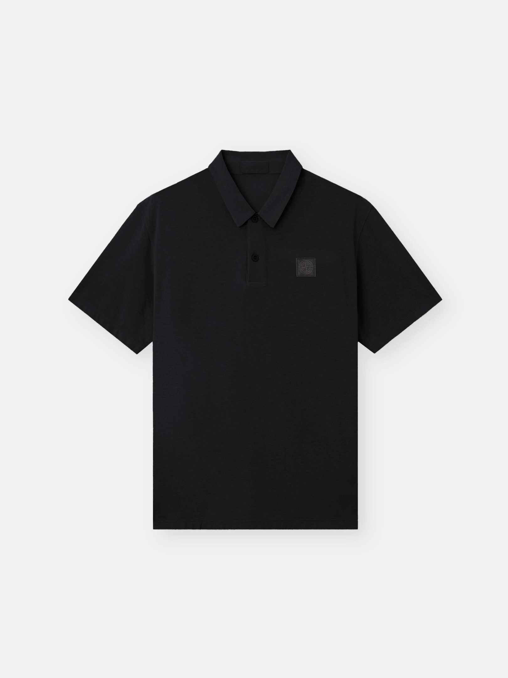 Short-sleeve polo shirt made from crepe cotton jersey, featuring a two-button neck fastening and monocolor Compass patch on the chest. Garment dyed. FABRIC RESEARCH AND TREATMENT Ghost pieces, derived from the concept of camouflage, are totally monochromatic. Short-sleeve polo shirt in crepe cotton jersey. Garment dyed. STYLE AND FIT Two-button neck fastening. Monocolor Stone Island Compass logo patch on chest. Slim fit. COMPOSITION AND CARE 100% Cotton