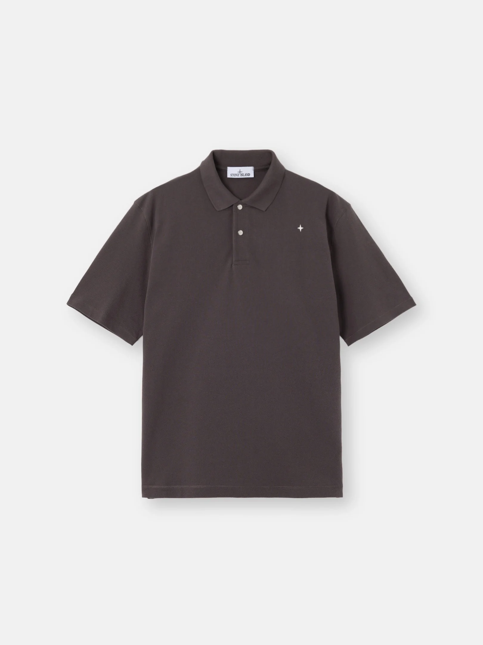 Short-sleeve polo shirt in 50/2 organic cotton pique, featuring a ribbed collar with two-snap fastening, Stone Island star embroidery on the chest, and overlock-stitched seams. FABRIC RESEARCH AND TREATMENT Short-sleeve polo shirt in 50/2 organic cotton pique. STYLE AND FIT Ribbed collar with two-snap fastening. Stone Island star embroidery on chest. Triangular insert under armholes. Overlock stitching at seams. Regular fit. COMPOSITION AND CARE Garment: 100% Cotton Ribbing: 100% Cotton