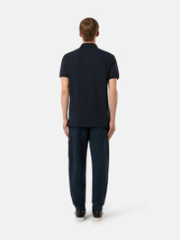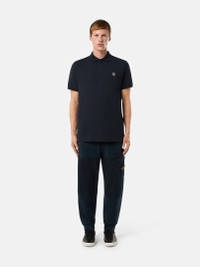 Short-sleeve polo shirt in organic cotton and elastane pique, featuring ribbed trims and Compass patch on the chest, with two-button fastening. FABRIC RESEARCH AND TREATMENT Short-sleeve polo shirt in 95% organic cotton / 5% elastane pique. STYLE AND FIT Ribbed collar with two-button fastening. Stone Island Compass logo patch on chest. Ribbed sleeve edge. Bottom side slits with inner striped tape trim. Slim fit. COMPOSITION AND CARE Garment: 95% Cotton 5% Elastane / Spandex. Ribbing: 100% Cotton