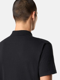 Short-sleeve polo shirt made from organic cotton jersey, featuring a two-button fastening and Compass patch. Garment dyeing and treatment creates a three-dimensional appearance. FABRIC RESEARCH AND TREATMENT Short-sleeve polo shirt in organic cotton jersey. Garment dyed and treated with the 'FISSATO' effect, a water-soluble resin treatment process and garment dyeing technique creating a three-dimensional appearance. STYLE AND FIT Ribbed collar with two-button fastening. Stone Island Compass logo patch on chest. Overlock seams. Slim fit. COMPOSITION AND CARE Garment: 100% Cotton. Ribbing: 100% Cotton