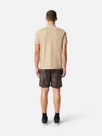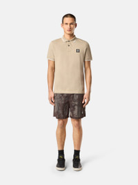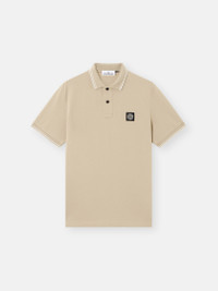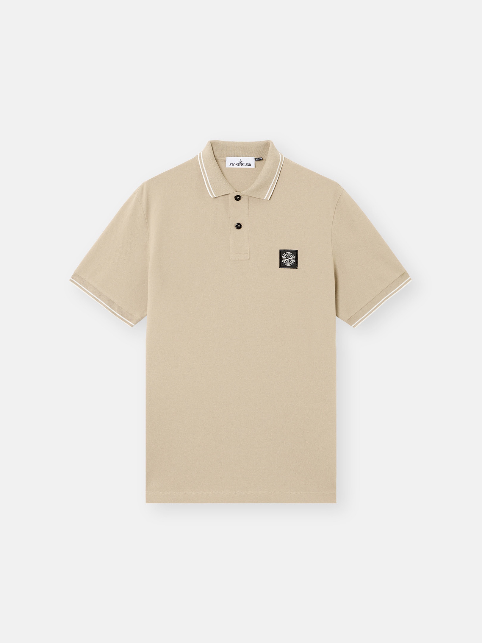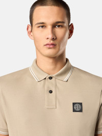 Short-sleeve polo shirt in organic cotton and elastane pique with two buttons, Compass logo on chest, and contrast-colored stripes on collar and sleeve edges. FABRIC RESEARCH AND TREATMENT Short-sleeve polo shirt in 95% organic cotton / 5% elastane pique. STYLE AND FIT Ribbed collar with two parallel contrast-colored stripes and two-button fastening. Stone Island Compass logo patch on chest. Ribbed sleeve edge with parallel contrast-colored stripes. Bottom slit on sides. Slim fit. COMPOSITION AND CARE 95% Cotton 5% Elastane / Spandex