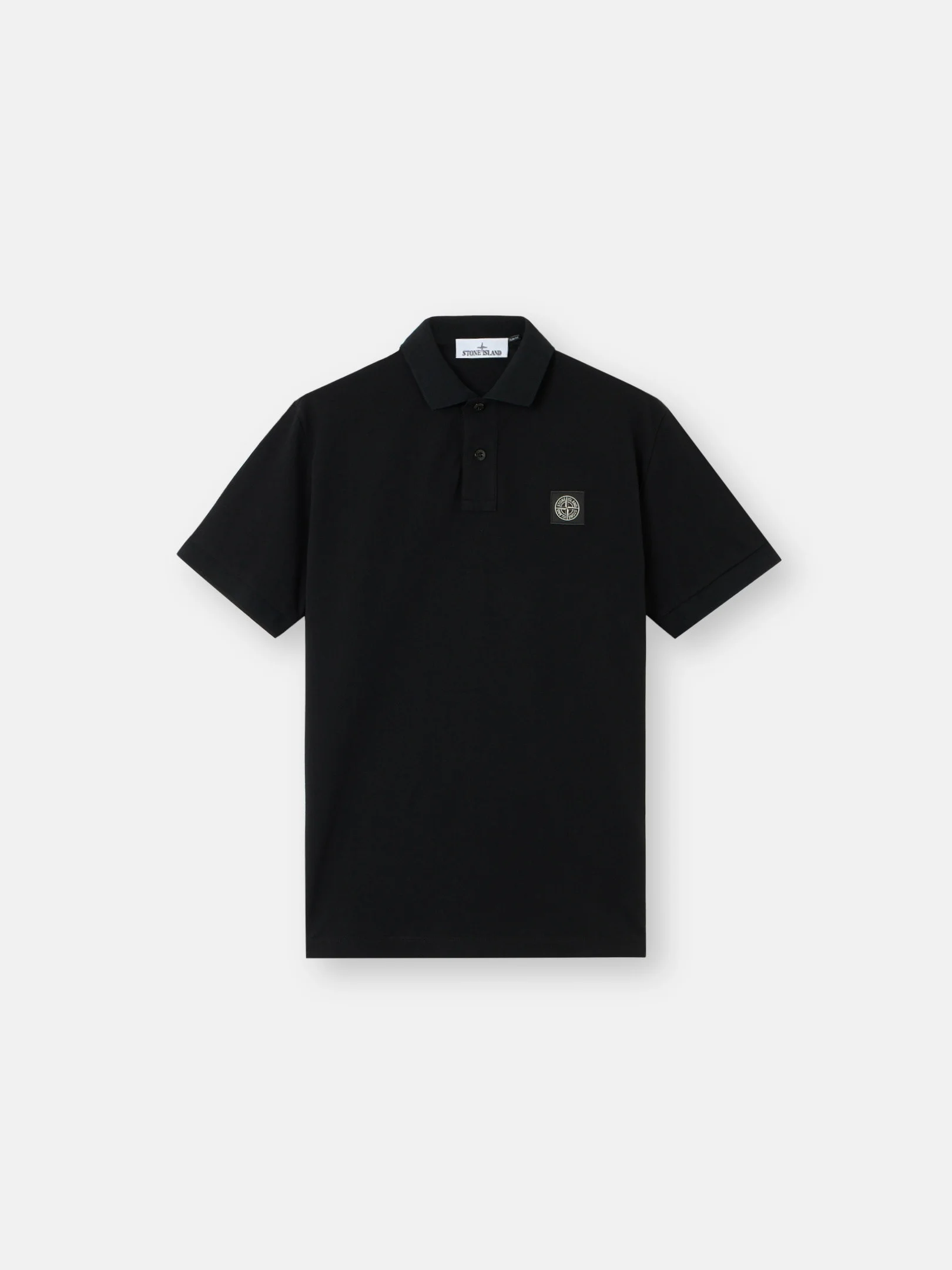 Short-sleeve polo shirt in organic cotton and elastane pique, featuring ribbed trims and Compass patch on the chest, with two-button fastening. FABRIC RESEARCH AND TREATMENT Short-sleeve polo shirt in 95% organic cotton / 5% elastane pique. STYLE AND FIT Ribbed collar with two-button fastening. Stone Island Compass logo patch on chest. Ribbed sleeve edge. Bottom side slits with inner striped tape trim. Slim fit. COMPOSITION AND CARE Garment: 95% Cotton 5% Elastane / Spandex. Ribbing: 100% Cotton