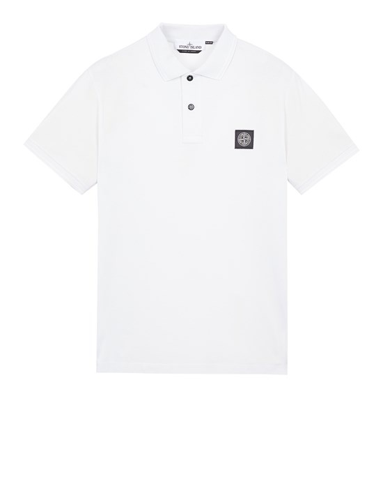 FABRIC RESEARCH AND TREATMENT STRETCH PIQUÉ: Short-sleeve Polo shirt in stretch piqué. STYLE Slim fit. Ribbed collar with two parallel contrasting color pinstripes. Two-button neck fastening. Stone Island Compass patch logo on chest. Ribbed edge at cuffs, with two parallel contrasting color pinstripes. Lateral bottom slits with inner striped tape appliqué. COMPOSITION 95% Cotton, 5% Elastane / Spandex