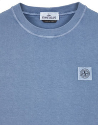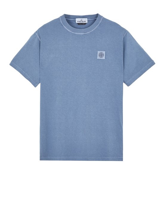 FABRIC RESEARCH AND TREATMENT 'FISSATO' TREATMENT: Short-sleeve T-shirt in cotton jersey. Garment dyed. The color codes V01xx are treated with the 'FISSATO' EFFECT, a water-soluble resin treatment process and garment dyeing technique creating a three-dimensional appearance. Other colors are garment dyed. STYLE Slim fit. Ribbed neckline. Overlock seams. Stone Island tonal patch logo on chest. Self-lining with rounded stitching under the neckline on back. COMPOSITION 100% Cotton