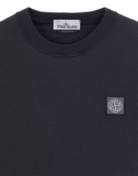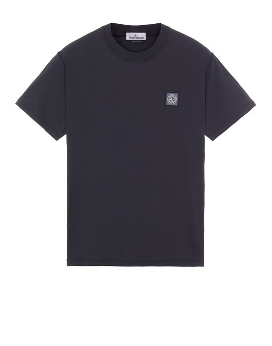 FABRIC RESEARCH AND TREATMENT GARMENT-DYED COTTON JERSEY 'FISSATO' TREATMENT: Short-sleeve T-shirt in cotton jersey. Garment dyed and treated with the 'FISSATO' effect, a water-soluble resin treatment process and garment dyeing technique creating a three-dimensional appearance. STYLE Ribbed neckline. Stone Island Compass patch logo on chest. Overlock seams. Lunette with inner lining on back, under the neckline. COMPOSITION 100% Cotton
