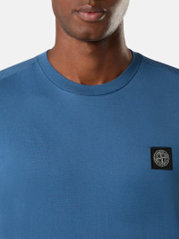 T-shirt in cotton jersey featuring a Stone Island Compass logo patch on the chest and chain overstitching details. Garment dyed. FABRIC RESEARCH AND TREATMENT Short-sleeve T-shirt in cotton jersey. Garment dyed. STYLE AND FIT Ribbed neckline. Stone Island Compass logo patch on chest. Chain overstitching on the bottom hem. COMPOSITION AND CARE 100% Cotton