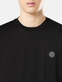 T-shirt in cotton jersey featuring a Stone Island Compass logo patch on the chest and chain overstitching details. Garment dyed. FABRIC RESEARCH AND TREATMENT Short-sleeve T-shirt in cotton jersey. Garment dyed. STYLE AND FIT Ribbed neckline. Stone Island Compass logo patch on chest. Chain overstitching on the bottom hem. COMPOSITION AND CARE 100% Cotton
