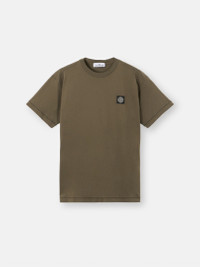 Short-sleeve T-shirt in cotton jersey, featuring a Compass logo patch on the chest and raised stitching at the hem. Garment dyed. FABRIC RESEARCH AND TREATMENT Short-sleeve T-shirt in cotton jersey. Garment dyed. STYLE AND FIT Ribbed neckline. Stone Island Compass logo patch on chest. Raised stitching along bottom hem. Slim fit. COMPOSITION AND CARE Garment: 100% Cotton. Ribbing: 100% Cotton
