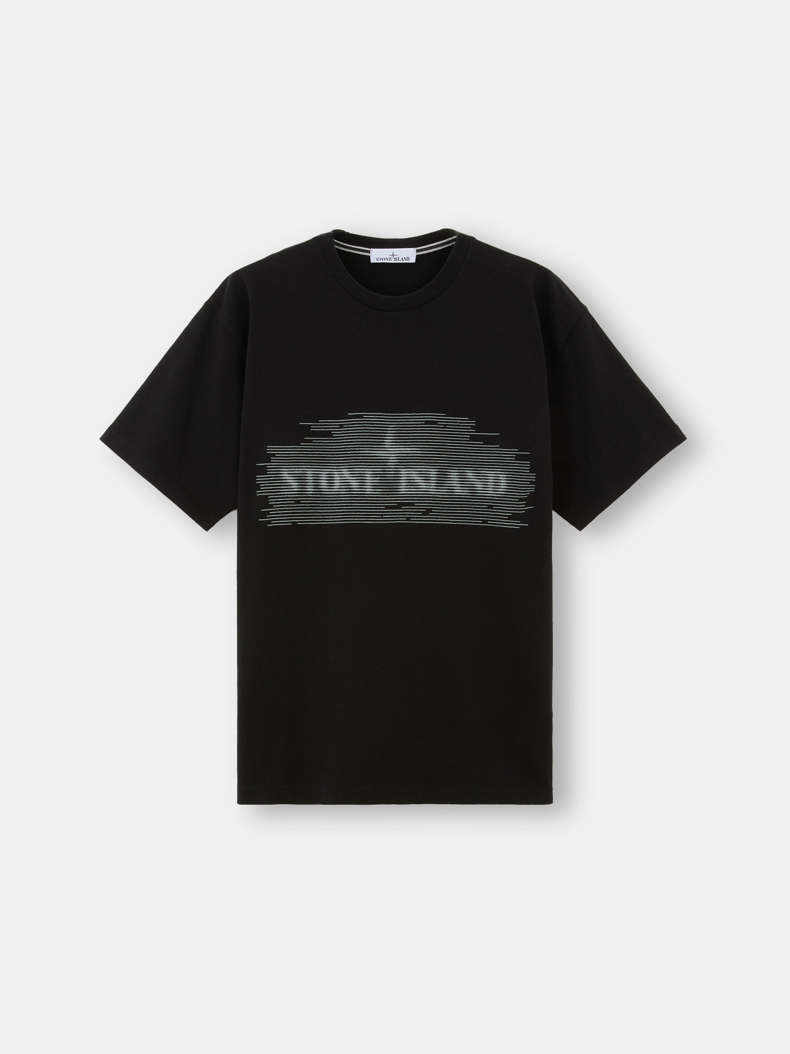 T-shirt in cotton jersey featuring the 'Optical One' print motif on the front with thin embroidered lines forming an optical render of the logo. Garment dyed. FABRIC RESEARCH AND TREATMENT Short sleeve T-shirt in cotton jersey. Garment dyed. STYLE AND FIT Ribbed neckline. 'Optical One' embroidery of thin horizontal embroidered lines forming an optical render of the Stone Island logo on the front. Small print of the Stone Island Compass logo under the neckline on back. Regular fit. COMPOSITION AND CARE 100% Cotton