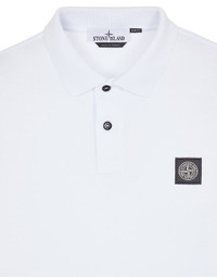 FABRIC RESEARCH AND TREATMENT Short-sleeve polo shirt in stretch cotton piqué, 97% organic cotton and 3% elastane. STYLE Slim fit. Ribbed collar. Two-button neck fastening. Stone Island Compass patch logo on chest. Ribbed sleeve edges. Lateral bottom slits with inner striped tape appliqué. COMPOSITION 97% Cotton, 3% Elastane / Spandex