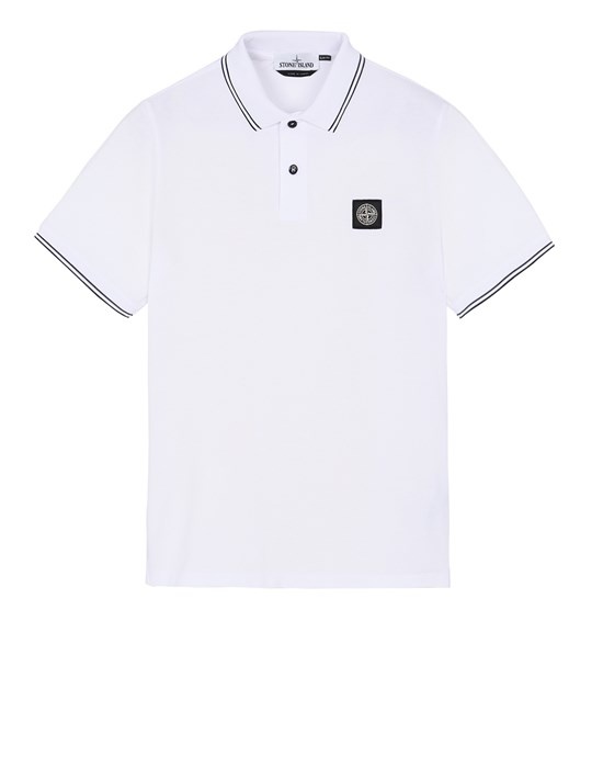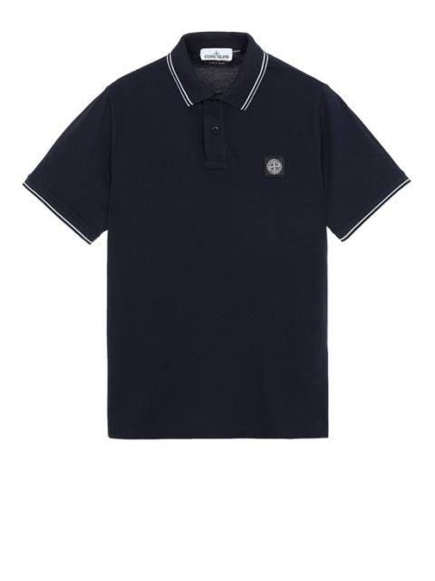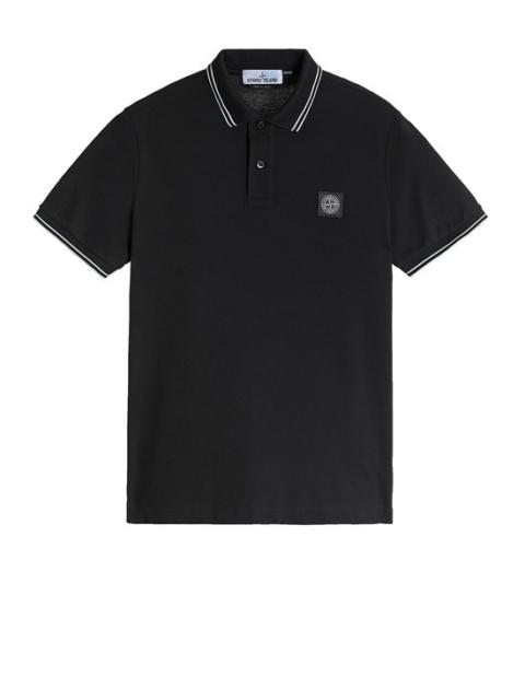 FABRIC RESEARCH AND TREATMENT STRETCH PIQUÉ: Short-sleeve Polo shirt in stretch piqué. STYLE Slim fit. Ribbed collar with two parallel contrasting color pinstripes. Two-button neck fastening. Stone Island Compass patch logo on chest. Ribbed edge at cuffs, with two parallel contrasting color pinstripes. Lateral bottom slits with inner striped tape appliqué. COMPOSITION 95% Cotton, 5% Elastane / Spandex