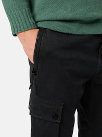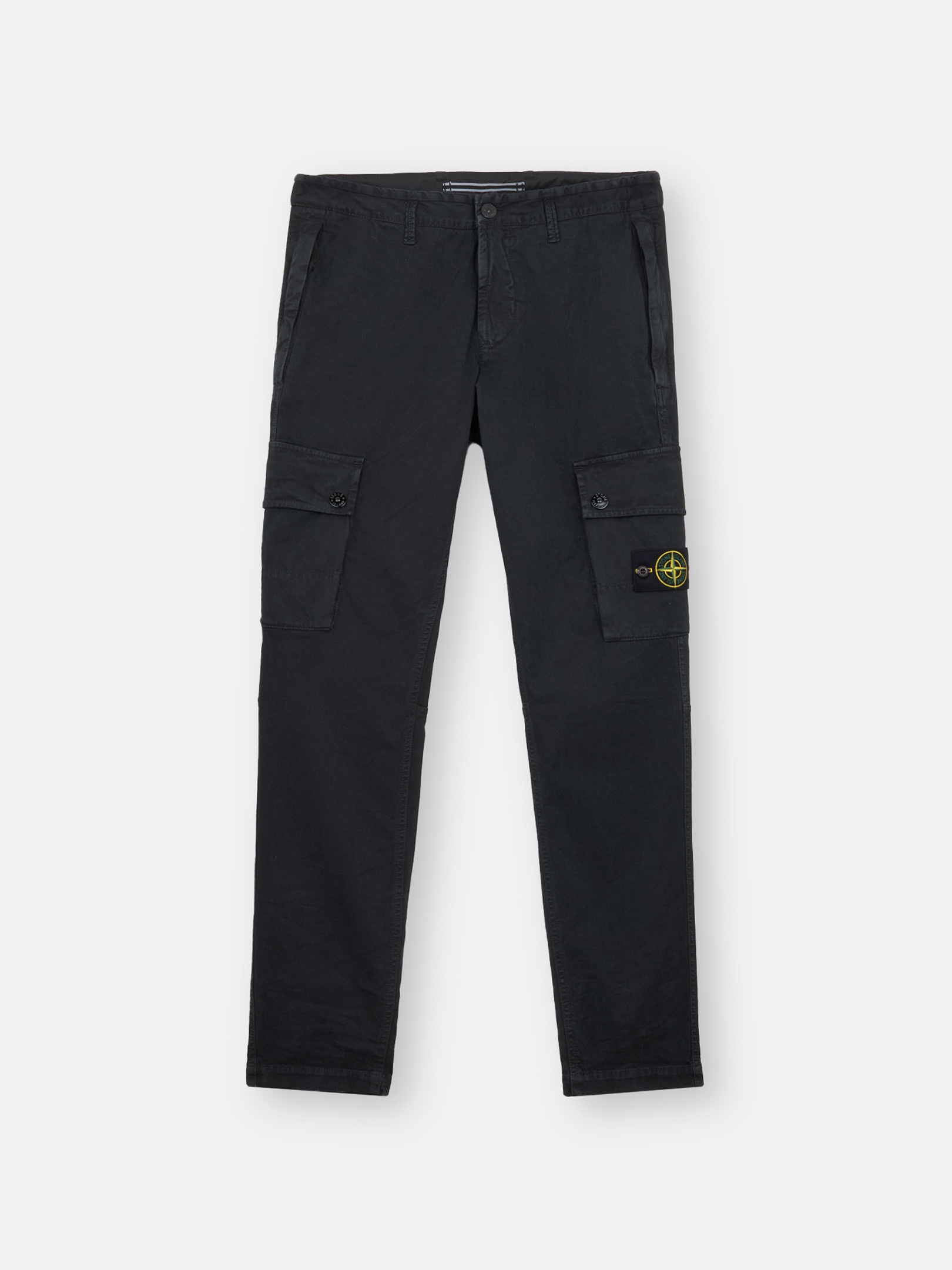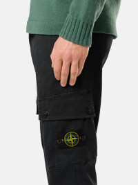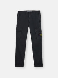 Cargo pants in stretch broken-twill organic cotton garment dyed with the exclusive 'OLD' treatment, lending a slightly worn and three-dimensional appearance to the item. FABRIC RESEARCH AND TREATMENT Cargo pants in stretch broken-twill organic cotton. Garment dyed with the ‘OLD’ effect, an exclusive dyeing treatment and subsequent fading on the finished garment to create a slightly worn and three-dimensional appearance. STYLE AND FIT Welt pockets with zipper closure. One slit pocket with hidden snap fastening on the back. Bellows pocket on each leg with flap and snap fastenings; the left one features the Stone Island badge. Zipper and button fly. Slim fit. COMPOSITION AND CARE External Fabric: 97% Cotton 3% Elastane / Spandex. Lining: 100% Cotton