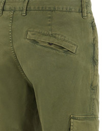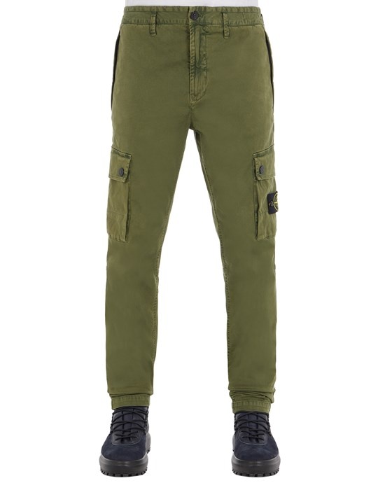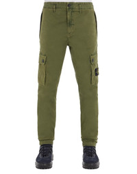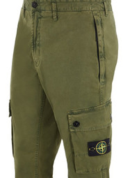 FABRIC RESEARCH AND TREATMENT T.CO+OLD: Cargo pants in stretch broken twill cotton. Garment dyed with the ‘OLD’ effect, an exclusive dyeing treatment and subsequent fading on the finished garment to create a slightly worn and three-dimensional appearance. STYLE Slim fit. In-seam pockets with hidden zipper fastening. One back pocket with hidden snap fastening. Bellows pocket on each leg with flap and snap fastenings; the left one featuring the Stone Island badge. Reinforced seat. Zipper and button fly. DETAILS Width at end: 15.0 cm COMPOSITION 97% Cotton, 3% Elastane / Spandex