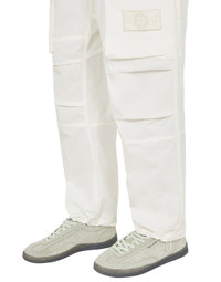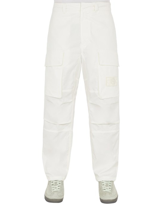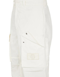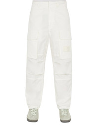 FABRIC RESEARCH AND TREATMENT WEATHERPROOF COTTON CANVAS_ GHOST PIECE: Ghost pieces are based on the concept of camouflage and are totally monochromatic. Even their Stone Island badge has been created in a special monochrome version to blend with the garment. Cargo pants made of a tightly woven cotton canvas fabric using the finest, long staple premium cotton fibers. The combination of dense weaving and swelling properties of the fiber when wet provides an excellent all-weather barrier with no need for extra coating or lamination. It is entirely natural, offering a unique level of comfort and texture. It is windproof, breathable and very durable. COMPOSITION 100% Cotton