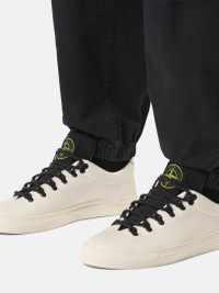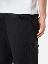 Cargo sweatpants in stretch organic cotton with a worn appearance, snap- and zipper-fastened pockets, and elasticated leg bottoms. Garment dyed. FABRIC RESEARCH AND TREATMENT Cargo sweatpants in stretch organic broken twill cotton. Garment dyed with the 'OLD' treatment, an exclusive dyeing treatment and subsequent fading on the finished garment for a slightly worn and three-dimensional appearance. STYLE AND FIT Slanted hand pockets with snap fastening on cotton tape. Two slit back pockets edged in cotton tape with snap fastening. Rounded bellows pocket on legs with zipper fastening; the left pocket features the Stone Island badge. Elasticated leg bottoms. Button and zipper fly. Regular fit. COMPOSITION AND CARE 98% Cotton 2% Elastane / Spandex