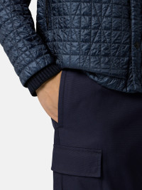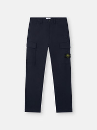 Cargo pants in panama cotton featuring gusseted flap pockets with hidden snaps, drawstring cuffs, and elasticated waistband. FABRIC RESEARCH AND TREATMENT Cargo pants in panama cotton. STYLE AND FIT Standing hand pockets. One back pocket with hidden snap. Cargo pockets with gusset, flap, and hidden snaps; left pocket features Stone Island badge. Tape drawstring in cuffs. Elasticated waistband. Zipper and button fly. Loose fit. COMPOSITION AND CARE 100% Cotton