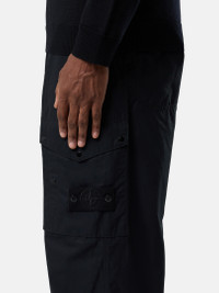 Cargo pants in all-weather cotton canvas that is windproof and breathable, featuring multiple pockets, elasticated drawstring cuffs, and an elasticated drawstring waistband. FABRIC RESEARCH AND TREATMENT Ghost pieces, derived from the concept of camouflage, are totally monochromatic. Even the Stone Island badge is created in a special monocolor version to blend in with the garment. Cargo fatigue pants made from a tightly woven organic cotton canvas using ultra-fine long fibers. The combination of dense weaving structure and the swelling properties of the fibers when wet provides an excellent weather barrier without the need for additional coating or lamination. It is entirely natural, offering a unique level of comfort. It is windproof, breathable, and extremely durable. STYLE AND FIT Rectangular angled hand pockets. Patch cargo pockets on front of legs with triangular flap, three snaps, and second vertical snap pocket. Stone Island Ghost badge on left cargo pocket. Back pockets with stitched outline, fixed flap, and concealed snap. Shaped knees. Elasticated drawcord with stopper in cuffs. Elasticated waistband with internal drawstring. Zipper fly with concealed snap and button fastenings. Loose fit. COMPOSITION AND CARE 100% Cotton