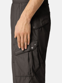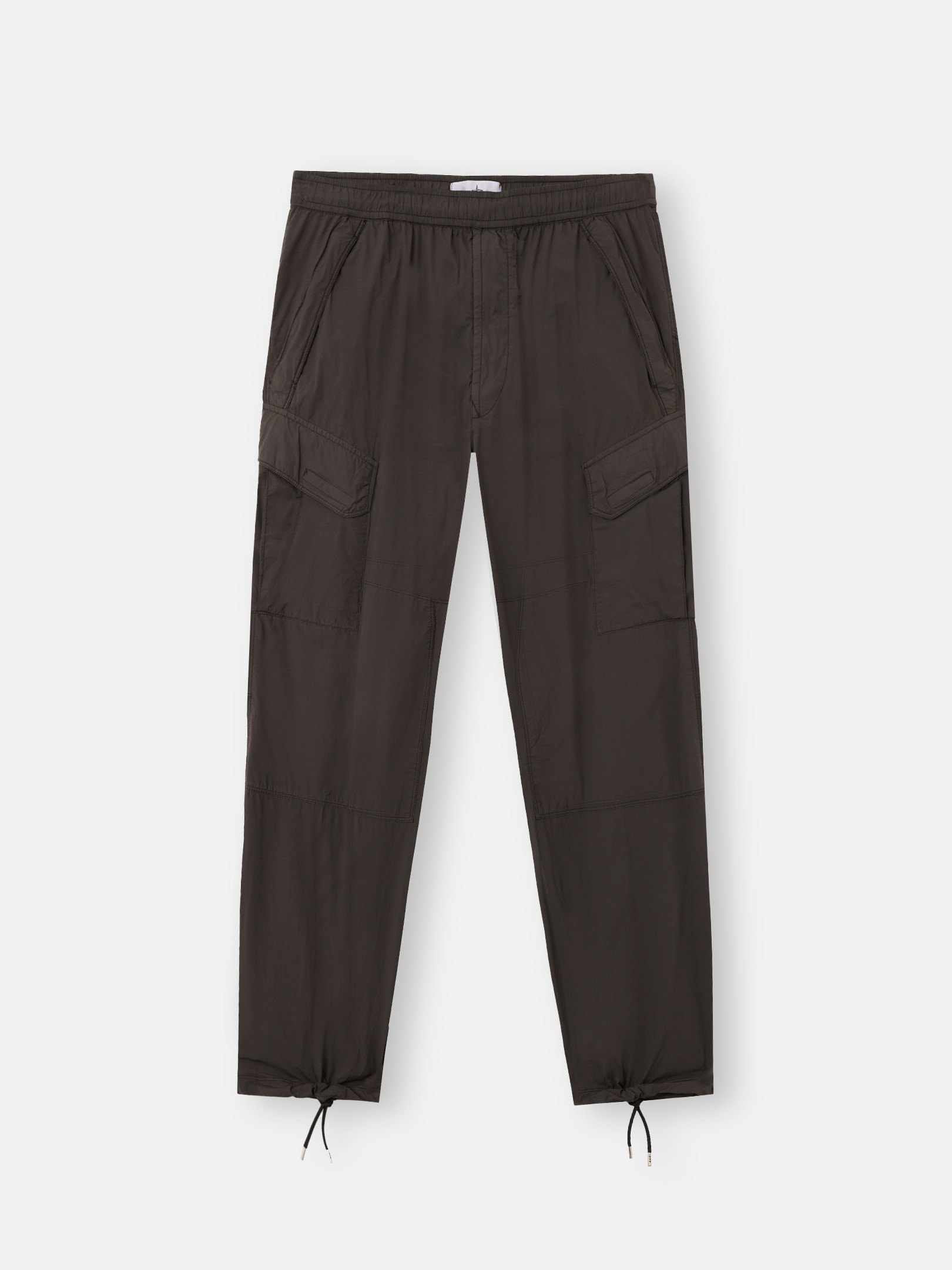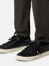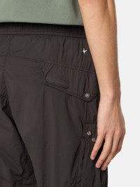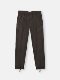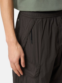 Cargo pants in a light, high-performance fabric with a clean appearance and a thin wind- and water-resistant coating as well as a stretch component for comfort. Garment dyed. FABRIC RESEARCH AND TREATMENT Cargo pants made of a light, high-performance fabric with a clean appearance, using fine denier microfiber nylon yarns. A very thin wind- and water-resistant coating is applied to the textile base. The increased stretch component makes this fabric super comfortable. The garment dyeing process enhances the color rendering of the fabric. STYLE AND FIT Slanted hand pockets with hidden zipper fastening. Two back pockets with slanted flaps held by hook-and-loop fastening and snap. Stone Island embroidery of small star under back of the waistband. Bellows pockets on legs with slanted flaps held by hook-and-loop fastening and snaps. Drawstring in cuffs. Elasticated waistband with inner drawstring. Zipper fly. Relaxed fit. COMPOSITION AND CARE External Fabric: 89% Polyamide / Nylon 11% Elastane / Spandex. Coating: 100% Polyurethanic Resin