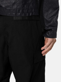 Cargo pants in stretch organic cotton twill, featuring a paneled construction, button and snap pockets, and an elasticated drawstring waistband. Garment dyed. FABRIC RESEARCH AND TREATMENT Cargo pants in stretch organic cotton twill. Garment dyed. STYLE AND FIT Vertical welt hand pockets. Patch bellows pockets with flap and concealed two-button fastening. Stone Island badge on left cargo pocket. Back pocket with fixed flap and concealed snap. Elasticated waistband with internal drawstring. Zipper fly. Paneled construction. Loose fit. COMPOSITION AND CARE 97% Cotton 3% Elastane / Spandex