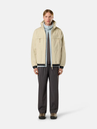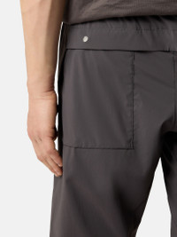 Technical pants in recycled stretch nylon featuring back pockets with snap fastening and an elasticated drawstring waistband and cuffs. FABRIC RESEARCH AND TREATMENT Technical pants in recycled stretch nylon tela. STYLE AND FIT Vertical hand pockets. Stone Island star embroidery on back right side. Rounded back yoke flap that covers bellows pockets with snap fastening. Elasticated drawcord with stopper in cuffs. Internal drawcord with stopper in elasticated waistband. Regular fit. COMPOSITION AND CARE 87% Polyamide / Nylon 13% Elastane / Spandex