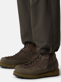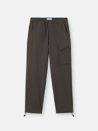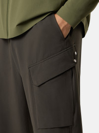Sweatpants in textured stretch fabric with 91% recycled nylon, featuring multiple pockets, elasticated waistband, drawstring cuffs, and Stone Island star embroidery. FABRIC RESEARCH AND TREATMENT Sweatpants made from a textured stretch fabric with 91% recycled nylon. STYLE AND FIT Slanted hand pockets. One back pocket with concealed snap under embroidery of Stone Island star. Bellows pocket on left leg with slanted snap-fastened flap and second standing pocket with concealed zipper. Elasticated drawcord in cuffs. Elasticated waistband. Zipper fly. Loose fit. COMPOSITION AND CARE 91% Polyamide / Nylon 9% Elastane / Spandex