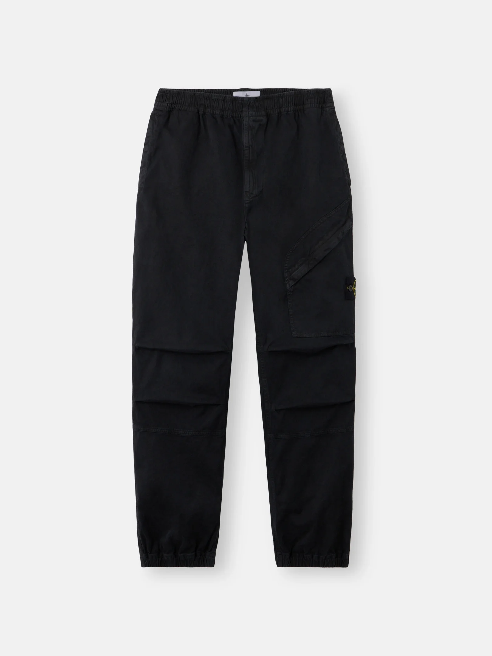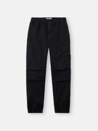 Sweatpants in stretch organic broken twill cotton, featuring an angled zipper pocket, elasticated cuffs, and an elasticated waistband. Garment dyed with the 'OLD' treatment. FABRIC RESEARCH AND TREATMENT Sweatpants in stretch organic broken twill cotton. Garment dyed with the 'OLD' treatment, an exclusive dyeing treatment and subsequent fading on the finished garment for a slightly worn and three-dimensional appearance. STYLE AND FIT Standing hand pockets. Two back pockets with snap under fixed flap. On left leg, patch pocket with diagonal entrance and zipper under fixed flap and Stone Island badge. Shaped knees. Elasticated cuffs. Elasticated waistband with inner drawstring. Zipper fly. Loose fit. COMPOSITION AND CARE 97% Cotton 3% Elastane / Spandex