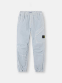 Sweatpants in stretch organic broken twill cotton, featuring an angled zipper pocket, elasticated cuffs, and an elasticated waistband. Garment dyed with the 'OLD' treatment. FABRIC RESEARCH AND TREATMENT Sweatpants in stretch organic broken twill cotton. Garment dyed with the 'OLD' treatment, an exclusive dyeing treatment and subsequent fading on the finished garment for a slightly worn and three-dimensional appearance. STYLE AND FIT Standing hand pockets. Two back pockets with snap under fixed flap. On left leg, patch pocket with diagonal entrance and zipper under fixed flap and Stone Island badge. Shaped knees. Elasticated cuffs. Elasticated waistband with inner drawstring. Zipper fly. Loose fit. COMPOSITION AND CARE 97% Cotton 3% Elastane / Spandex