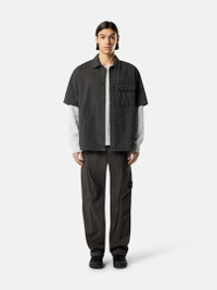 Cargo pants in light stretch cotton tela, featuring hand pockets, snap back pockets, and drawstring cuffs. Garment dyed. FABRIC RESEARCH AND TREATMENT Cargo pants in light stretch cotton tela “paracadute”. Garment dyed. STYLE AND FIT Angled hand pockets. Bellows cargo pockets with flap and three concealed snaps. Stone Island badge on left cargo pocket. Back pocket with fixed tape flap and concealed snap. Internal drawstring at cuffs. Zipper fly and button fastening. Loose fit. COMPOSITION AND CARE 97% Cotton 3% Elastane / Spandex