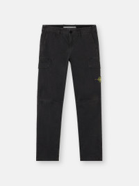 Cargo pants in stretch organic broken twill cotton featuring a slightly worn appearance, and multiple pockets with snap fastening. Garment dyed. FABRIC RESEARCH AND TREATMENT Cargo pants in stretch organic broken twill cotton. Garment dyed with the 'OLD' treatment, an exclusive dyeing treatment and subsequent fading on the finished garment for a slightly worn and three-dimensional appearance. STYLE AND FIT Slanted hand pockets. One back slit pocket with hidden snap fastening. Pocket on legs featuring a flap with indent seam and hidden two-snap fastening; the left pocket features the Stone Island badge. Zipper and button fly. Skinny fit. COMPOSITION AND CARE 98% Cotton 2% Elastane / Spandex