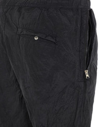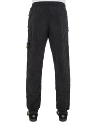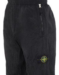 FABRIC RESEARCH AND TREATMENT NYLON METAL IN ECONYL® REGENERATED NYLON: Pants in Nylon Metal. The trilobate structure of the nylon yarn, its gray weft, black warp colors are the grounds of the distinctive metallic and tonic sheen of Nylon Metal, one of the most versatile fabrics born from the STONE ISLAND textile research. The evolution of this iconic fabric sees the use of Econyl® regenerated yarns. The pre-and post-consumer, end-of-life nylon is recycled with a complex depolymerization process to create this fiber that features the same intrinsic characteristics of nylon from raw fossil materials. The finished piece then undergoes an elaborate double dye procedure. STYLE Loose fit. Standing hand pockets with zipper fastening. The zipper takes the color from the dye bath as well. One pocket on back, with hidden snap fastening. Stone Island badge on the left leg. Elasticized waistband with inner drawstring. Elasticized leg bottoms. DETAILS Width at end: 17.0 cm COMPOSITION GARMENT: 100% Polyamide / Nylon GARMENT DETAILS: 100% Polyamide / Nylon