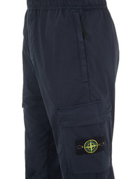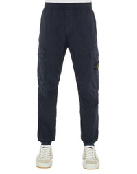 FABRIC RESEARCH AND TREATMENT GARMENT-DYED STRETCH COTTON TELA 'PARACADUTE': Cargo pants in stretch cotton tela. Garment dyed. STYLE Regular tapered fit. In-seam hand pockets with hidden zipper fastenings. One back pocket with hidden snap fastening. Bellows pocket on legs, with flap and hidden snap fastening; the left pocket bears the Stone Island badge. Engineered knees. Elasticized band on leg bottom. Elasticized waist with inner drawstring. Zipper fly. DETAILS Width at end: 15.0 cm COMPOSITION 97% Cotton, 3% Elastane / Spandex