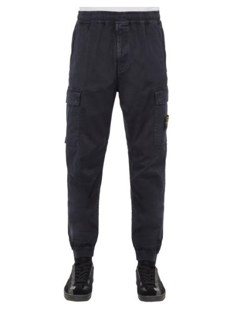 FABRIC RESEARCH AND TREATMENT Cargo pants in stretch broken twill cotton. Garment dyed with the ‘OLD’ effect, an exclusive dyeing treatment and subsequent fading on the finished garment to create a slightly worn and three-dimensional appearance. STYLE Regular tapered fit. Hand pockets on seam. One slanting slit pocket on back, with hidden snap fastening. One bellows patch pocket on each leg, with flap, Velcro and snap fastenings; the left pocket features the Stone Island badge. Shaped knee. Elasticized band at leg bottoms. Elasticized waistband with inner drawstring. Zipper fly. DETAILS Width at end: 14.0 cm COMPOSITION 97% Cotton, 3% Elastane / Spandex