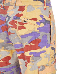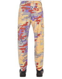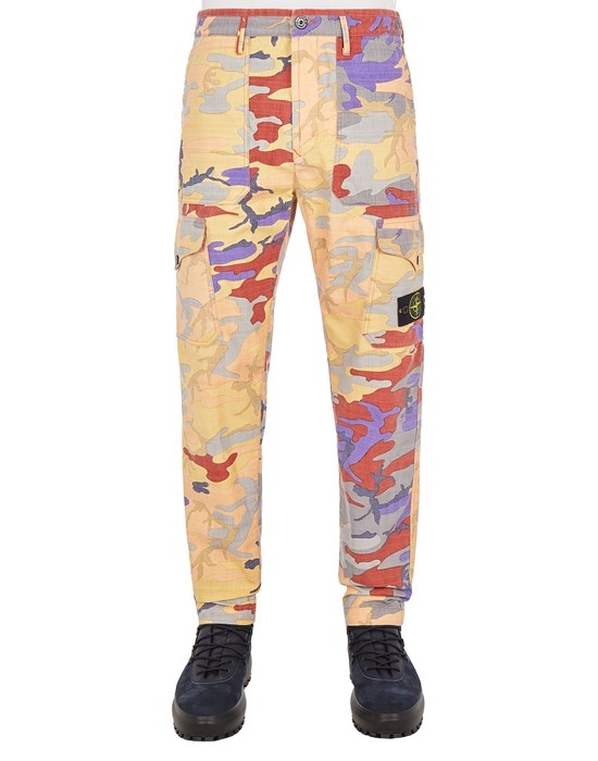 FABRIC RESEARCH AND TREATMENT S.I. HERITAGE CAMO RIPSTOP NYLON: Cargo pants made of a slightly slub weave ripstop both in the weft and warp, composed of mechanically spun nylon fibers. In the spinning process, the nylon filaments are steamed to create an appearance closer to organic fibers. The all-over print revisits the archival printing pattern of the Ice Jacket Camouflage ‘090. All the shades present in the 3 color variants of the time are recombined to obtain 2 new versions with vertical or diagonal shading. STYLE Regular fit. Patch hand pockets with standing entrance. One back pocket with hidden snap fastening. One patch pocket per leg, with flap and snap fastening; The left one features the Stone Island badge. Zipper and button fly. DETAILS Width at end: 19.0 cm COMPOSITION GARMENT: 100% Polyamide / Nylon Lining: 100% Cotton