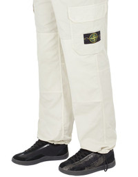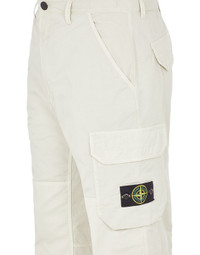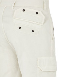 FABRIC RESEARCH AND TREATMENT Cargo pants in stretch cotton gabardine. Garment dyed. STYLE Comfort fit. Slanting hand pockets. Two back pockets, with flap and hidden snaps on cotton herringbone tape. Bellows pocket on legs, with flap and hidden snaps on cotton herringbone tape. Drawstring in the bottom hem. Zipper and button fly closure. DETAILS Width at end: 27.0 cm COMPOSITION 97% Cotton, 3% Elastane / Spandex