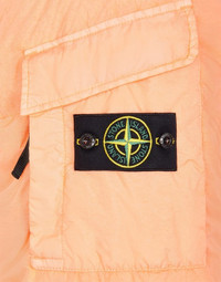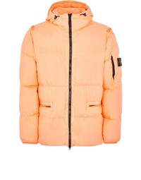 FABRIC RESEARCH AND TREATMENT GARMENT DYED CRINKLE REPS R-NY DOWN: Down jacket made in a 100% recycled light nylon rep with an ultra-tight weaving construction. The resin coating of its inner face makes it wind-resistant and mildly water-resistant. The finished piece has been filled with the finest down, appositely treated to bear the stress of the garment dyeing procedure. Extra lightness and comfort are achieved through the direct injection of the feathers and by a simplified construction of the down bags. Due to the resin treating of the material, the color penetrates unevenly into the material, lending a crinkle aspect to the surface. The addition of a special PFC-free agent to the dye formula gives the piece an anti-drop finish. STYLE Hood with visor and contour drawstring. Horizontal hand pockets, with zipper fastening edged with tape. Nylon tape loops at shoulders. Patch pocket on the left sleeve, with top entrance fastened by flap with Velcro and side entrance with zipper fastening; Stone Island badge on top. Two-way zipper fastening. COMPOSITION External fabric: 100% Polyamide / Nylon - Coating: Polyurethane resin Secondary fabric: 100% Polyamide / Nylon Lining: 100% Polyamide / Nylon - Coating: Polyurethane resin Padding (Feather): EIDERDOWN (Minimum 80% Down) 80% EIDERDOWN, 20% Feather Contains non-textile parts of animal origin