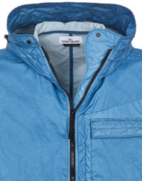 FABRIC RESEARCH AND TREATMENT GARMENT-DYED MEMBRANA 3L TC: Hooded jacket in Membrana 3L TC, a 3-layer light performance fabric made from an opaque nylon outer face laminated to a breathable, water-resistant membrane, protected by an imperceptible polyester base. STONE ISLAND's garment dyeing expertise gives an outstanding color to the outer face while preserving the performance features of the inner membrane. The addition of a special agent to the dye formula gives the piece an anti-drop finish. STYLE Hood with visor, contour and horizontal elasticated drawstring. One patch pocket on the left side of the chest with flap and hidden snap fastening; pocket inside with zipper fastening. In-seam hand pockets with hidden zipper fastenings. Stone Island badge on the left sleeve. Tightening snap at cuffs. Two-way zipper fastening. COMPOSITION GARMENT: OUTSIDE: 100% Polyamide / Nylon - Coating: Polyurethane resin INSIDE: 100% Polyester