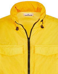 FABRIC RESEARCH AND TREATMENT NASLAN LIGHT WATRO_GARMENT DYED: Field Jacket in Naslan Light Watro, a light, durable and abrasion-resistant fabric composed of mechanically spun nylon. The nylon filaments are steamed during the spinning process to create an appearance closer to organic fibers. The fabric has been resin-treated on the inside to achieve mild wind and water resistance. Garment dyed with the addition of a special anti-drop agent. STYLE Standing collar with concealed hood in resin-treated nylon, with elasticized drawstring. Two bellows chest pockets, with flap and snap fastening. Hand pockets with standing invisible zipper fastening. Stone Island badge on the left sleeve. Tightening snap at cuffs. Shoulder gussets and waist yoke on back. Elasticized drawstring in the bottom hem. Two-way zipper fastening. COMPOSITION External fabric: 100% Polyamide / Nylon - Coating: Polyurethane resin COLLAR: 100% Polyamide / Nylon CONCEALED HOOD: 100% Polyamide / Nylon - Coating: Polyurethane resin