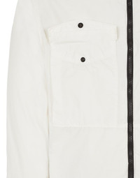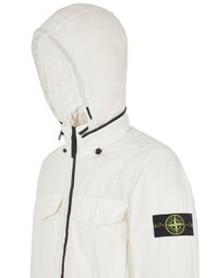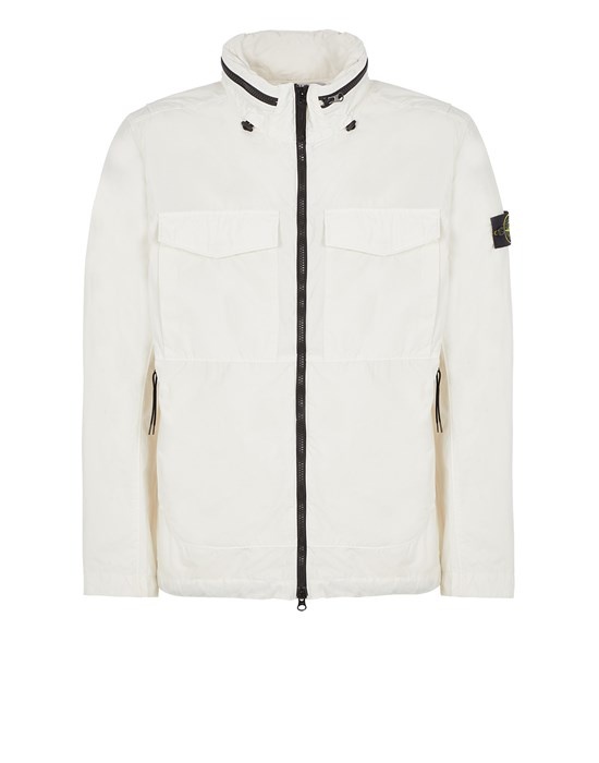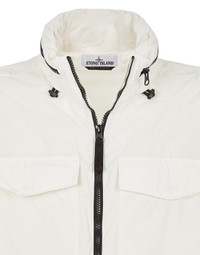FABRIC RESEARCH AND TREATMENT NASLAN LIGHT WATRO_GARMENT DYED: Field Jacket in Naslan Light Watro, a light, durable and abrasion-resistant fabric composed of mechanically spun nylon. The nylon filaments are steamed during the spinning process to create an appearance closer to organic fibers. The fabric has been resin-treated on the inside to achieve mild wind and water resistance. Garment dyed with the addition of a special anti-drop agent. STYLE Standing collar with concealed hood in resin-treated nylon, with elasticized drawstring. Two bellows chest pockets, with flap and snap fastening. Hand pockets with standing invisible zipper fastening. Stone Island badge on the left sleeve. Tightening snap at cuffs. Shoulder gussets and waist yoke on back. Elasticized drawstring in the bottom hem. Two-way zipper fastening. COMPOSITION External fabric: 100% Polyamide / Nylon - Coating: Polyurethane resin COLLAR: 100% Polyamide / Nylon CONCEALED HOOD: 100% Polyamide / Nylon - Coating: Polyurethane resin