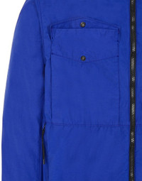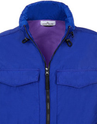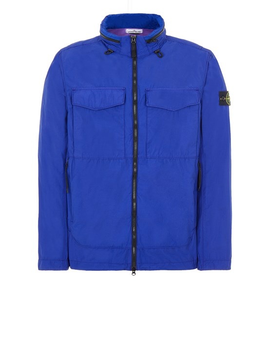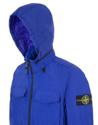 FABRIC RESEARCH AND TREATMENT NASLAN LIGHT WATRO_GARMENT DYED: Field Jacket in Naslan Light Watro, a light, durable and abrasion-resistant fabric composed of mechanically spun nylon. The nylon filaments are steamed during the spinning process to create an appearance closer to organic fibers. The fabric has been resin-treated on the inside to achieve mild wind and water resistance. Garment dyed with the addition of a special anti-drop agent. STYLE Standing collar with concealed hood in resin-treated nylon, with elasticized drawstring. Two bellows chest pockets, with flap and snap fastening. Hand pockets with standing invisible zipper fastening. Stone Island badge on the left sleeve. Tightening snap at cuffs. Shoulder gussets and waist yoke on back. Elasticized drawstring in the bottom hem. Two-way zipper fastening. COMPOSITION External fabric: 100% Polyamide / Nylon - Coating: Polyurethane resin COLLAR: 100% Polyamide / Nylon CONCEALED HOOD: 100% Polyamide / Nylon - Coating: Polyurethane resin